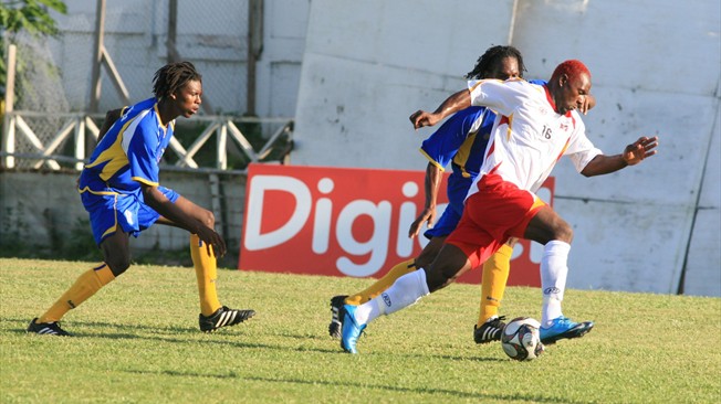 A spectacular corner kick from the left flank by Okeem “Soda” Challenger found the back of a challenging Jermaine Browne and the back of the net.